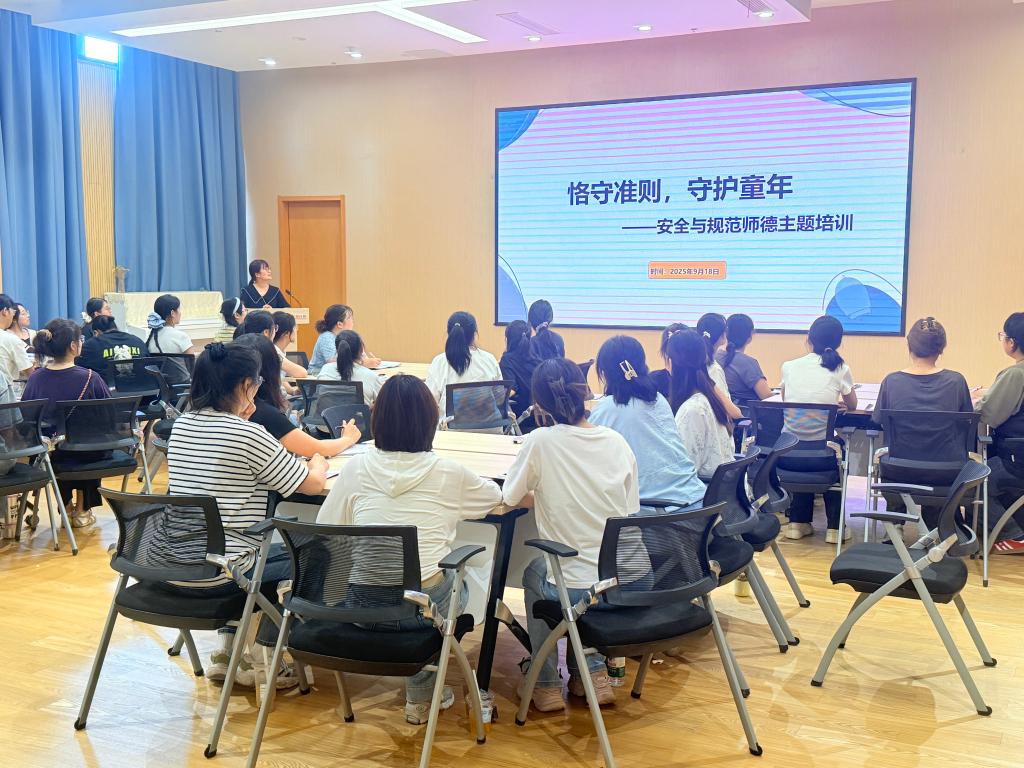 为深入贯彻《新时代幼儿园教师职业行为十项准则》,进一步筑牢师德师风根基,9月18日,太仓市港城幼教中心港区幼儿园围绕“恪守准则,守护童年”为主题,组织全体教师开展了一场内容详实、形式多样的安全与规范专题培训活动。
