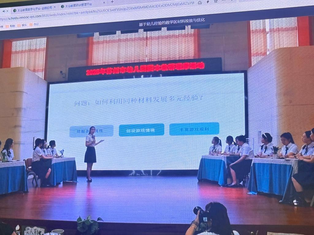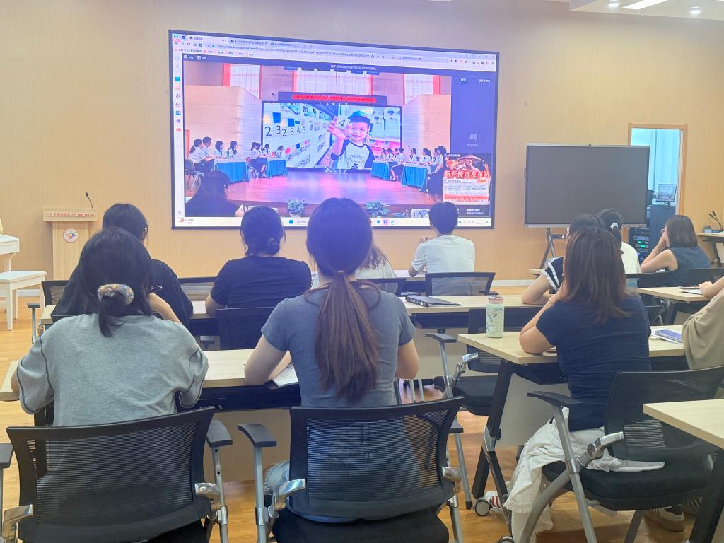 为进一步提升园本教研质量与教育教学水平,加强园所间的交流与学习,激发教师对幼儿游戏环境优化、支持策略调整及游戏质量提升的深度思考,9 月 24 日,港区幼儿园组织全体教师及秋水街幼儿园部分教师,在园内多功能厅开展了苏州市幼儿园园本教研线上观摩活动,聚焦吴江区思贤实验幼儿园 “基于幼儿经验的数学区材料投放与优化” 主题教研现场。